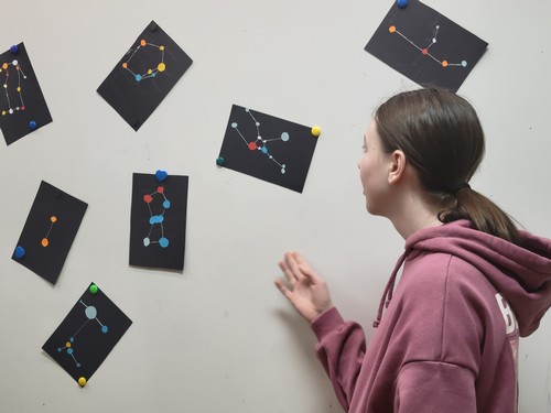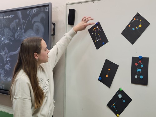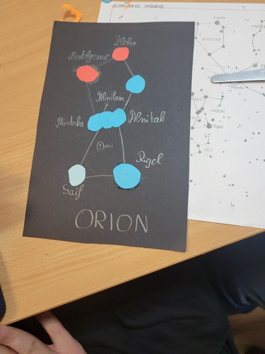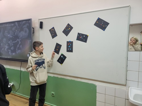 Nakon predavanja učenici su istraživali pojedina zviježđa i spektralne razrede pojedinih zvijezda. Svaki učenik izabrao je jedno zviježđe i napravio model tog zviježđa. Na kraju su sve modele složili u jednu cjelinu prema njihovom položaju na nebu. Svaki učenik je prezentirao svoje zviježđe.