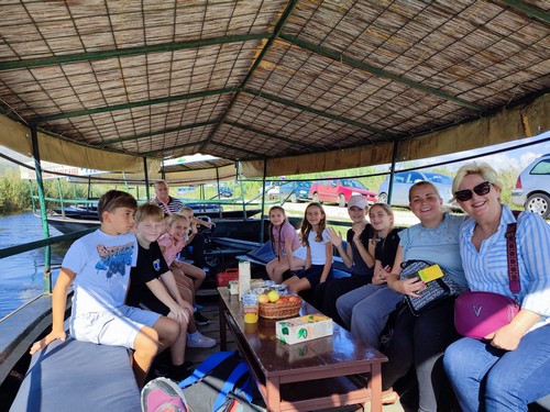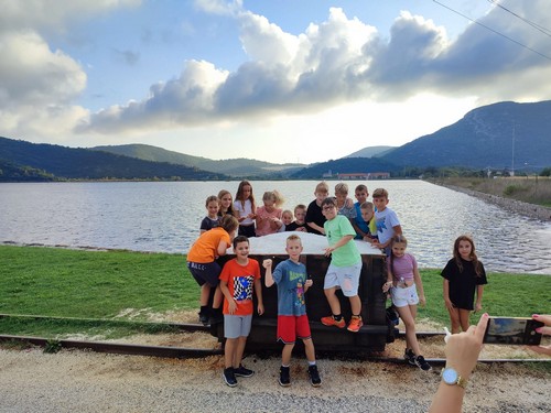 Ideja je realizirana 26. i 27.9. 2024. Kretalo se u ranim jutarnjim satima, a uz povremena duža i kraća stajanja uspješno smo stigli na odredište (Opuzen, hotel Narenta) u 13 sati, točno na ručak. Iako je put bio dug, umoru nije bilo traga pa se odmah nakon ručka krenulo u akciju.Prvo vožnja lađama, slađenje fritulama i jabukama koje su priredili domaćini, a nakon toga parkiranje u šašu Neretve i iskrcavanje na plantaži najranjije sorte mandarine. Prekaljenim beračima 4.c razreda trebalo je oko dvadesetak minuta da obrste niska stabla i usput napune žedne trbuščiće sočnim plodovima. Nakon praktičnog slijedio je teoretski dio pa smo od našeg domaćina agronoma saznali sve detalje o uzgoju ove ukusne voćke. Veseli, suncem okupani i još uvijek puni energije (klinci nisu pokazivali ni najmanji trag umora), odlučili smo vrijeme provesti u razgledavanju. Posjetili smo tako Pelješki most te gradić Ston. Ovaj prekrasan gradić, Dubrovnik u malome, s tvrđavom i zidinama doista nas je oduševio. Uspjeli smo čak, premda nenajavljenji, posjetiti Solanu Ston gdje smo srdačno dočekani. Pogledali smo promotivni film, poigrali se u prostoru solane te kupili koji suvenir. Prije odlaska iz ovog krasnog i gostoljubivog gradića učiteljica i teta Sanja počastile su nas sladoledom. Na povratku u hotel večera, slobodno vrijeme te odlazak na zasluženi počinak. Drugi smo se dan nakon doručka posvetili pogonu za pakiranje i dodatnu obradu mandarina. Učenici su iz prve ruke vidjeli cijeli proces od berbe sa stabla sve do utovara u hladnjače koje voze ovo voće do naših najdražih dućana. Cijeli su postupak zorno vidjeli, a i osjetili na svojoj koži prolaskom kroz hladnjače sve u pratnji našeg domaćina. Na kraju svaki je učenik dobio svoju mrežicu mandarina s natpisom „za Bogumil Toni“. Slijedilo je i jedno iznenađenje. Više puta čuli smo za čudesne muhe koje čuvaju urod, a sada smo ih mogli i vidjeti zatvorene u papirnate vrećice i spremne za prvi let! Dalje smo se uputili prema delti Neretve sa željom da barem noge smočimo. No, ova ekipa, iskrcana na prekrasnoj pješčanoj plaži, moru nikako nije mogla odoljeti. Premda slabo opremljeni ručnicima i kupaćim kostimima, uskoro su se svi klinci brćkali u ugodnom moru, a pridružile su im se čak i učiteljice zajedno s našom organizatoricom Sanjom. Na kraju je slijedilo još jedno divno iznenađenje – ručak u restoran Galeb, na stijeni iznad mora s prekrasnim pogledom na Pelješac.