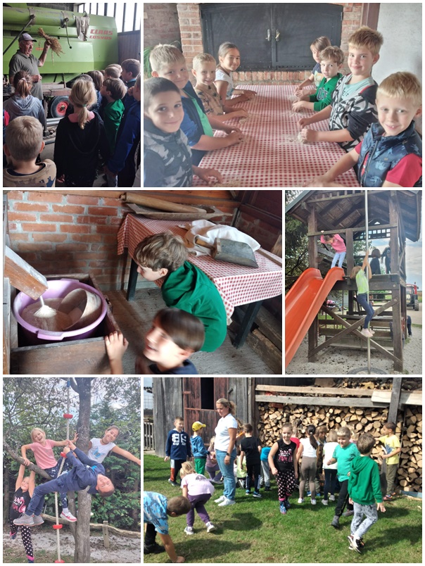Krenuli su u 9 sati ujutro i oko 10 sati stigli na domaćinstvo u Donju Zdenčinu. Podijelili su se u dvije grupe. Jedna je grupa otišla u mlin naučiti kako se mljevenjem žitarica dobiva brašno te upoznati različite vrste žitarica od kojih se dobiva brašno. Od samljevenog brašna, djeca će kasnije umijesiti svoje kruščiće. Druga će grupa za to vrijeme, vozeći se traktorom, obići gospodarstvo gdje će se upoznati s domaćim životinjama (kozama, ovcama, kravama, svinjama i peradi).