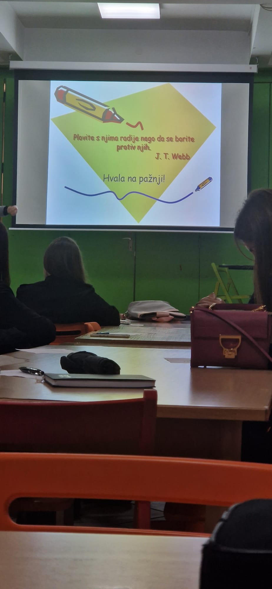 Tema roditeljskog sastanka bila je: „Darovito dijete i podrška“, a sastanak je održala školska psihologinja Jasmina Vizler Zorko, kao voditelj Tima za darovite učenike.
