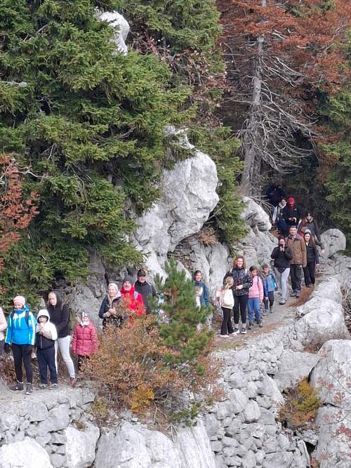 Cijeli smo dan uživali planinareći i družeći se uz prekrasne vidike koji se pružaju sa staze. Naš je cilj bila Rossijeva koliba gdje smo napravili odmor, a nakon toga krenuli natrag prema početku staze. Dan je bio kao stvoren za planinarenje, a Velebit nam je pokazao svu svoju snagu i moć. Red sunca i topline, pa red oblaka i vjetra, pratili su nas putem. Na povratku, skrenuli smo sa staze i izlet završili u PD Zavižan gdje smo uz pogled na Jadran, a neki i uz malo grudanja , dočekali zalazak sunca. Kući smo se vratili u kasnim večernjim satima. Umorni, ali ponosni . Proći Premužićevu stazu, skoro 18 km hoda po kršu, izrazito je teško. Posebno smo ponosni na naše male planinare, a bilo je tu i onih najmanjih, četverogodišnjaka. Izlet koji će, vjerujemo , pamtiti cijeli život. Ali, Mali planinari neće dugo odmarati. Već idući vikend čeka ih tradicionalna 12.po redu Kestenijada na Kostanjevcu Podvrškom.