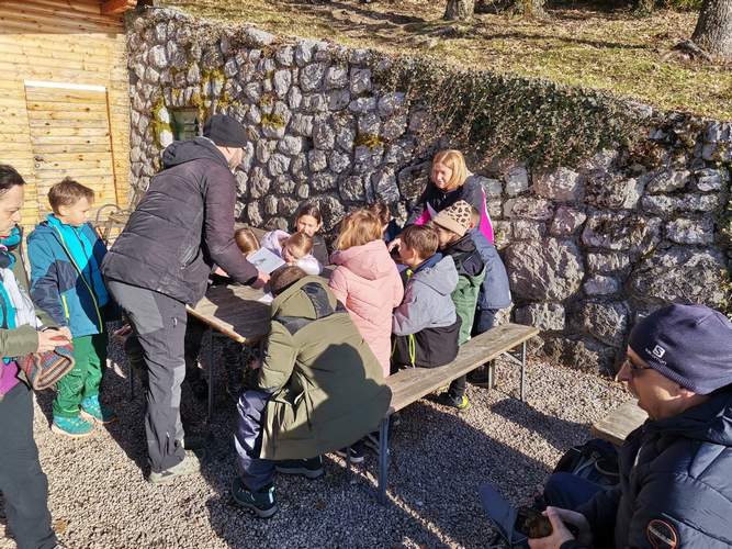 Iako je vrijeme gripe i viroza pa smo morali otkazati Nikolinjsko planinarenje, ipak smo se uspjeli okupiti i , na blagdan Sv. Lucije otići na Japetić. Ovu nas je subotu bilo malo manje, ali smo s velikom voljom i veseljem krenuli , iz maglovitog i tmurnog Samobora, prema suncem okupanom najvišem vrhu Samoborskog gorja- Japetiću. Po dolasku u PD Žitnica, malo smo odmorili , a onda je slijedilo iznenađenje. Mali su planinari dobili u zadatak riješiti nekoliko mozgalica čija su im rješenja dala upute prema kojima su krenuli u potragu za blagom Sv. Nikole. Mozgalice su riješene brzo, a potraga za skrivenim blagom trajala je dvadesetak minuta. Uz malu pomoć učitelja Saše, blago su pronašle male planinarke Leona i Lucija. U vreći su bili slatki poklončići za sve male planinare. Druženje smo nastavili uz ručak , igru i prekrasan pogled na, maglom prekriven, grad. Kalendarsku smo godinu tako završili na najljepši mogući način, a planinarsku godinu nastavljamo u siječnju, nadamo se, na sanjkanju.