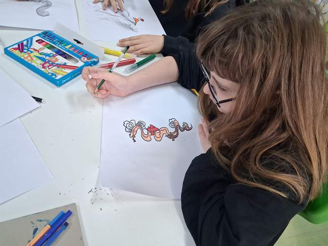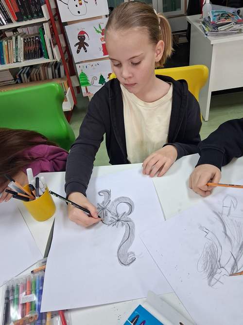Radionica je bila prilika za razvijanje kreativnosti, mašte i likovnih vještina, ali i za dublje upoznavanje lokalne baštine. U ugodnoj i poticajnoj atmosferi učenici su stvarali vlastite radove, povezujući umjetnost, književnost i zavičajnu tradiciju. Nastali crteži bit će primjer za slikanje na drvenim daščicama koje će postati zanimljiv i originalan proizvod naše zadruge.