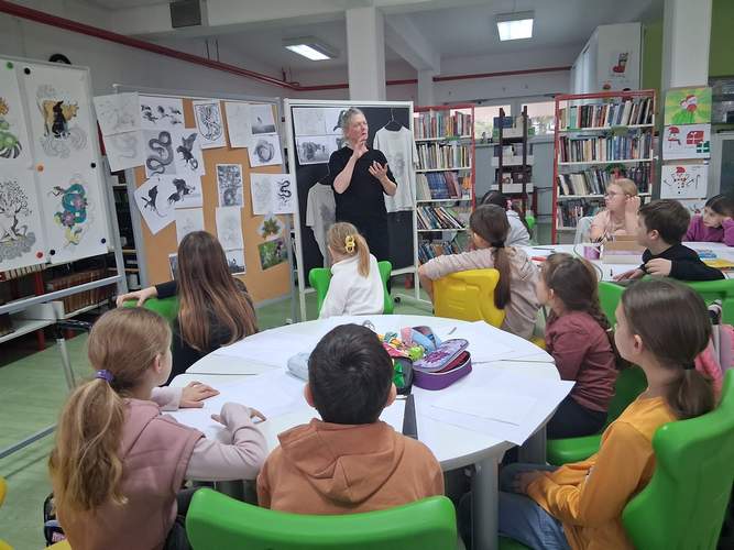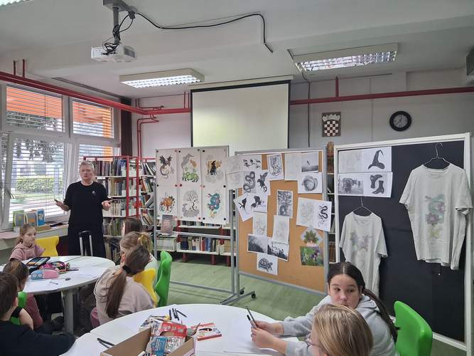 Učenicima je izložila i detaljno opisala ilustracije iz slikovnice „Legende Samobora i samoborskog kraja“: Pozoj, Leteća kača, Kornjača, Vile, Coprnice i Bijeli zec — te im predočila cjelokupan proces nastanka svake ilustracije, od početne ideje do završnog likovnog rješenja.