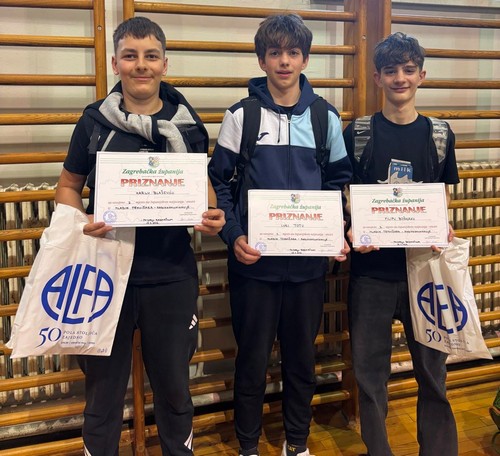 U kategoriji Radiokomunikacije, koja obuhvaća pisanu provjeru znanja, vještine u radioorijentaciji i radiokomunikacijama te izradu i prezentaciju tehničke tvorevine, naši su učenici postigli izvanredan uspjeh. Treće mjesto osvojio je Filip Bošnjak, učenik 7. E razreda, drugo mjesto osvojio je Karlo Blažević, učenik 8. E razreda, dok je prvo mjesto osvojio Luka Tot, učenik 7. A razreda.