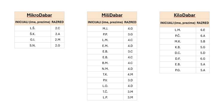 Natjecanje se organizira u pet kategorija, a naših 92 učenika natjecalo se u kategorijama MikroDabar (1. i 2. razredi), MiliDabar (3. i 4. razredi) i KiloDabar (5. i 6. razredi).